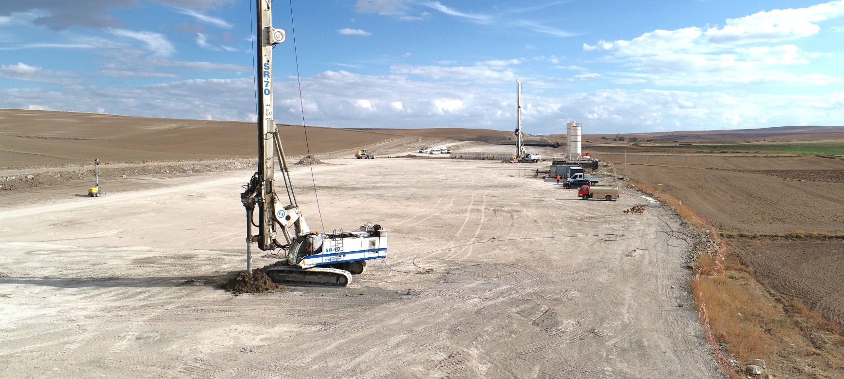 Yüksek Hızlı Tren Hattı İnşaatında, zemin sıkıştırma ve güçlendirme işlemi sağlanması için DSM | Deep Soil Mixing kolon imalatı yöntemi uygulanmıştır.